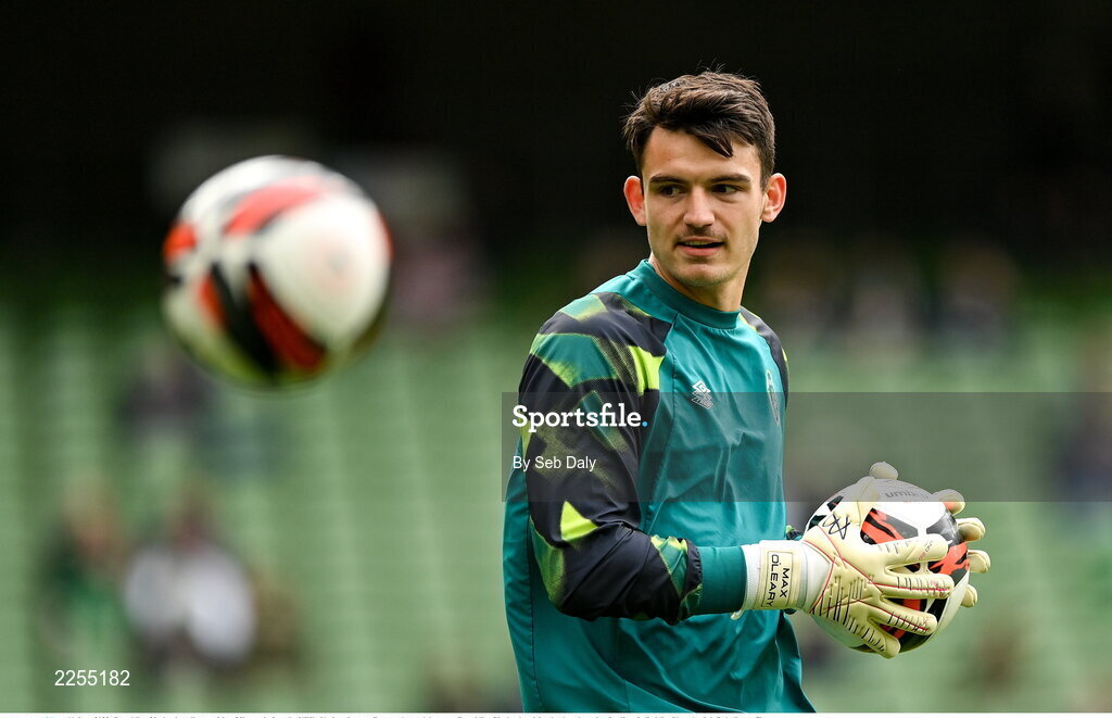 11 June 2022; Republic of Ireland goalkeeper Max O'Leary before the UEFA Nations League B group 1 match between Republic of Ireland and Scotland at the Aviva Stadium in Dublin. Photo by Seb Daly/Sportsfile