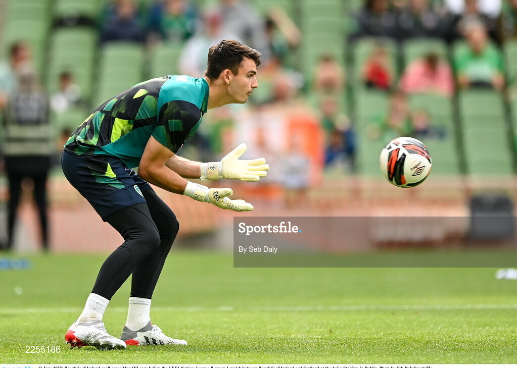 11 June 2022; Republic of Ireland goalkeeper Max O'Leary before the UEFA Nations League B group 1 match between Republic of Ireland and Scotland at the Aviva Stadium in Dublin. Photo by Seb Daly/Sportsfile