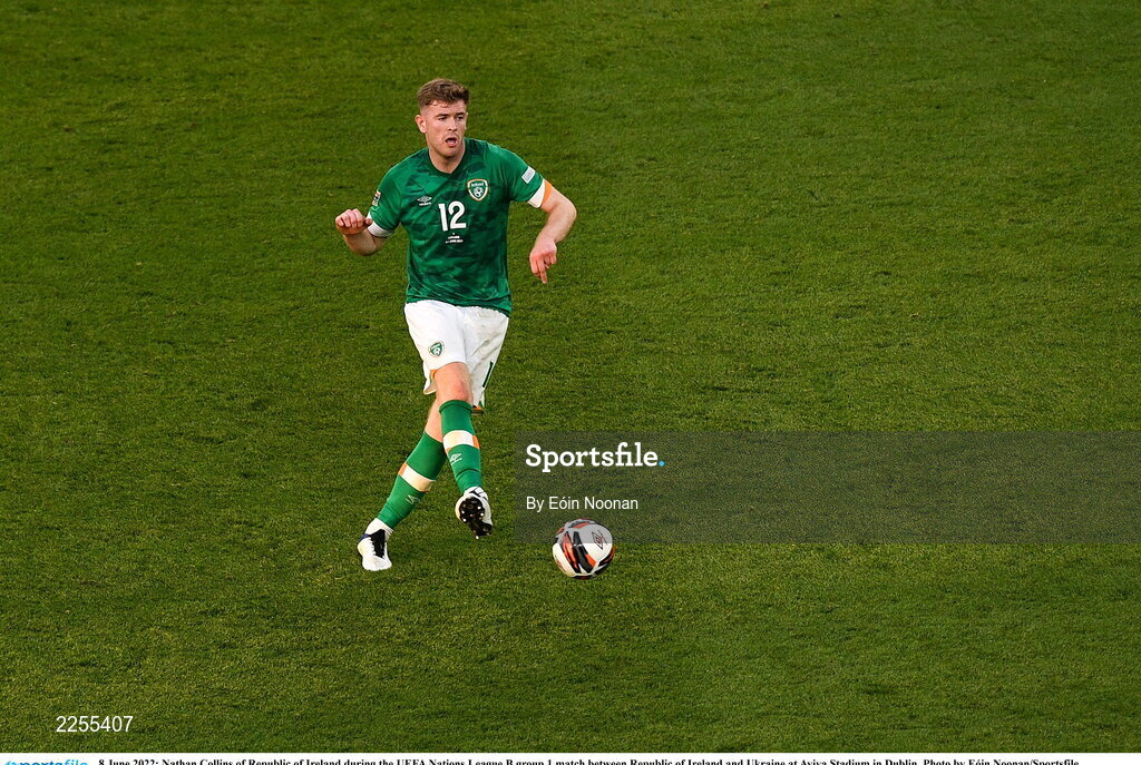 8 June 2022; Nathan Collins of Republic of Ireland during the UEFA Nations League B group 1 match between Republic of Ireland and Ukraine at Aviva Stadium in Dublin. Photo by Eóin Noonan/Sportsfile