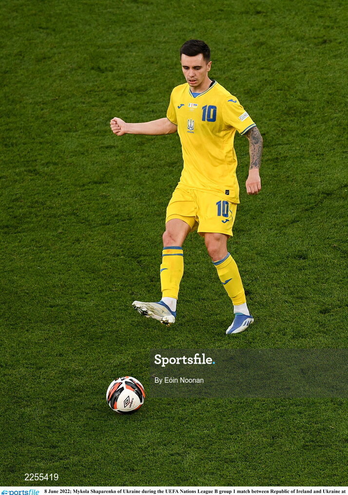 8 June 2022; Mykola Shaparenko of Ukraine during the UEFA Nations League B group 1 match between Republic of Ireland and Ukraine at Aviva Stadium in Dublin. Photo by Eóin Noonan/Sportsfile