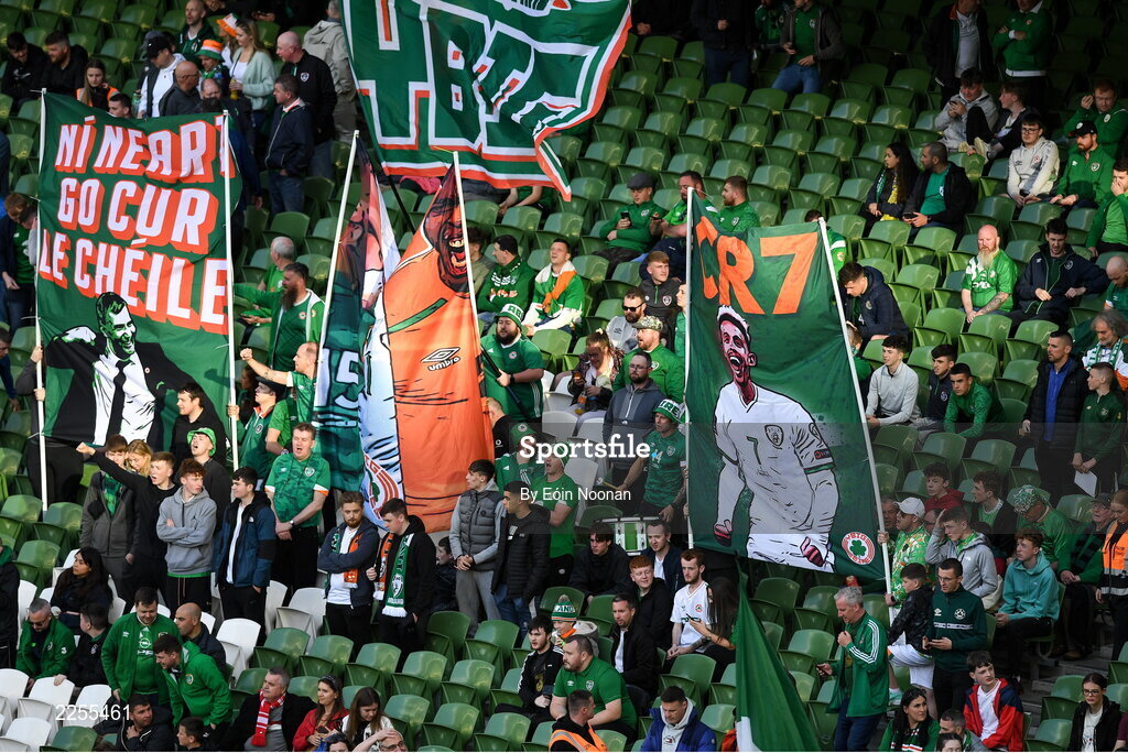 8 June 2022; Republic of Ireland supporters during the UEFA Nations League B group 1 match between Republic of Ireland and Ukraine at Aviva Stadium in Dublin. Photo by Eóin Noonan/Sportsfile