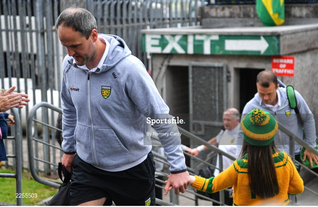 12 June 2022; Michael Murphy of Donegal and Donegal supporter Cassie Rose Melly before the GAA Football All-Ireland Senior Championship Round 2 match between between Donegal and Armagh at St Tiernach's Park in Clones, Monaghan. Photo by Ramsey Cardy/Sportsfile