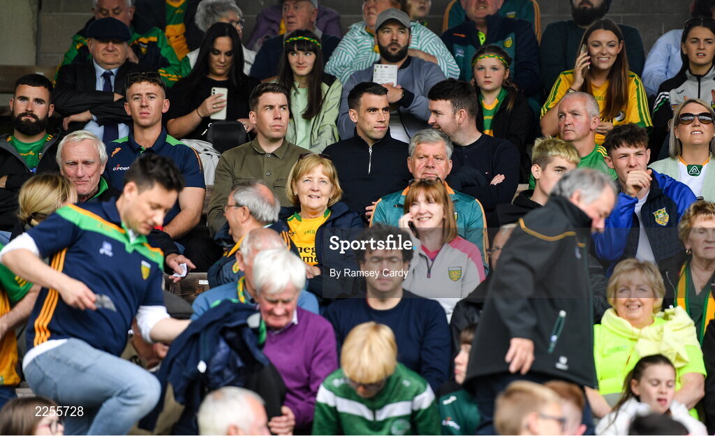 12 June 2022; Republic of Ireland captain Seamus Coleman, with his brother Francis, left, during the GAA Football All-Ireland Senior Championship Round 2 match between between Donegal and Armagh at St Tiernach's Park in Clones, Monaghan. Photo by Ramsey Cardy/Sportsfile