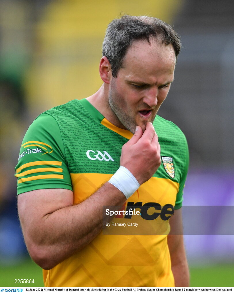 12 June 2022; Michael Murphy of Donegal after his side's defeat in the GAA Football All-Ireland Senior Championship Round 2 match between between Donegal and Armagh at St Tiernach's Park in Clones, Monaghan. Photo by Ramsey Cardy/Sportsfile