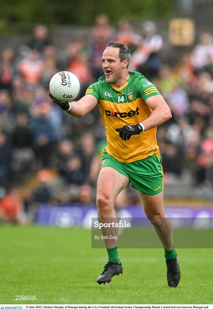 12 June 2022; Michael Murphy of Donegal during the GAA Football All-Ireland Senior Championship Round 2 match between between Donegal and Armagh at St Tiernach's Park in Clones, Monaghan. Photo by Seb Daly/Sportsfile