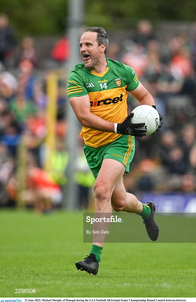 12 June 2022; Michael Murphy of Donegal during the GAA Football All-Ireland Senior Championship Round 2 match between between Donegal and Armagh at St Tiernach's Park in Clones, Monaghan. Photo by Seb Daly/Sportsfile
