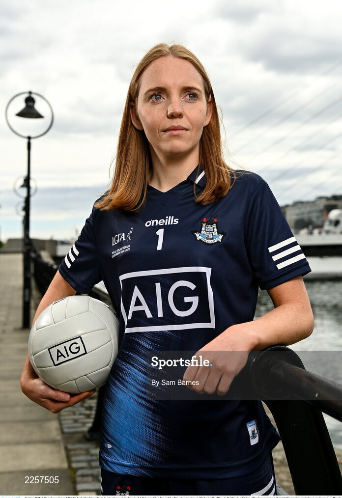 14 June 2022; AIG ambassador and Dublin footballer Ciara Trant in attendance at the launch of AIG’s new "For Times Like These" campaign at AIG Ireland’s offices in Dublin. In addition, AIG also announced their LGFA member and player car insurance offer of 25% off for players and 15% off for all members across the country at www.aig.ie/lgfa. Photo by Sam Barnes/Sportsfile