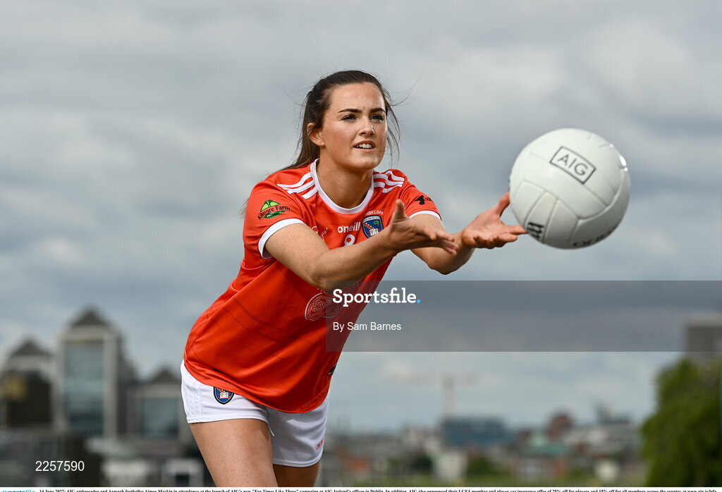 14 June 2022; AIG ambassador and Armagh footballer Aimee Mackin in attendance at the launch of AIG’s new "For Times Like These" campaign at AIG Ireland’s offices in Dublin. In addition, AIG also announced their LGFA member and player car insurance offer of 25% off for players and 15% off for all members across the country at www.aig.ie/lgfa. Photo by Sam Barnes/Sportsfile