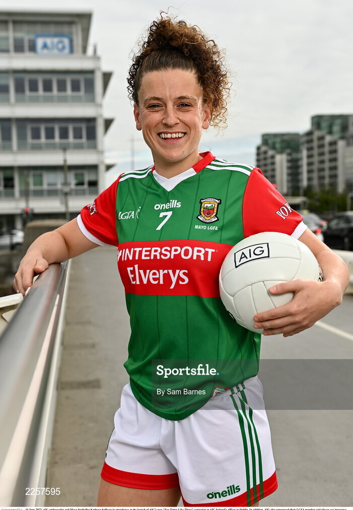 14 June 2022; AIG ambassador and Mayo footballer Kathryn Sullivan in attendance at the launch of AIG’s new "For Times Like These" campaign at AIG Ireland’s offices in Dublin. In addition, AIG also announced their LGFA member and player car insurance offer of 25% off for players and 15% off for all members across the country at www.aig.ie/lgfa. Photo by Sam Barnes/Sportsfile
