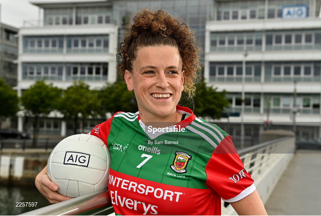 14 June 2022; AIG ambassador and Mayo footballer Kathryn Sullivan in attendance at the launch of AIG’s new "For Times Like These" campaign at AIG Ireland’s offices in Dublin. In addition, AIG also announced their LGFA member and player car insurance offer of 25% off for players and 15% off for all members across the country at www.aig.ie/lgfa. Photo by Sam Barnes/Sportsfile