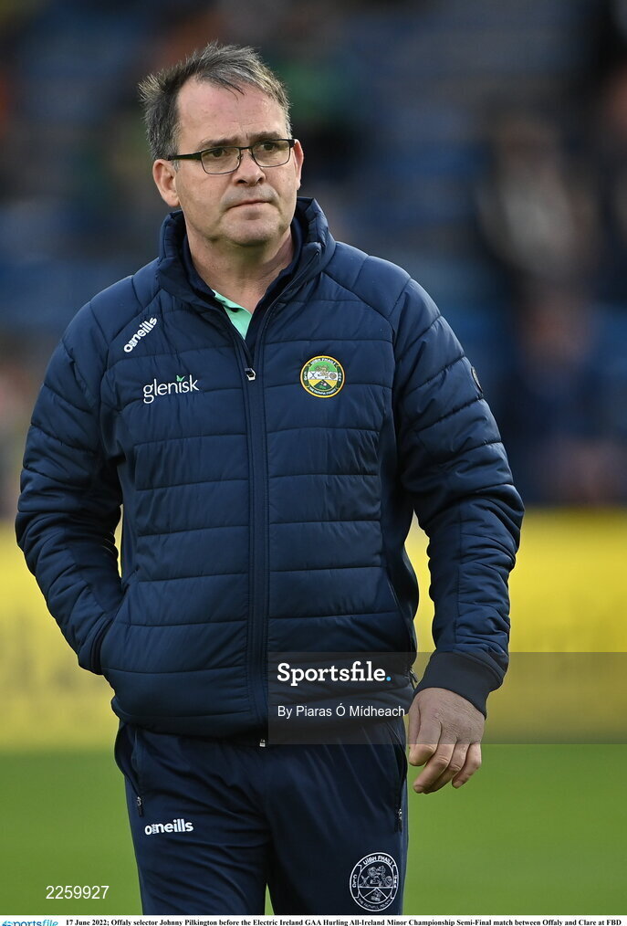 17 June 2022; Offaly selector Johnny Pilkington before the Electric Ireland GAA Hurling All-Ireland Minor Championship Semi-Final match between Offaly and Clare at FBD Semple Stadium in Thurles, Tipperary. Photo by Piaras Ó Mídheach/Sportsfile