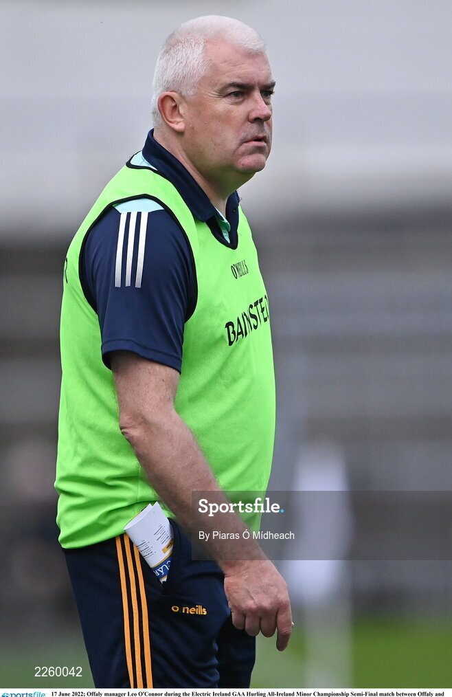 17 June 2022; Offaly manager Leo O'Connor during the Electric Ireland GAA Hurling All-Ireland Minor Championship Semi-Final match between Offaly and Clare at FBD Semple Stadium in Thurles, Tipperary. Photo by Piaras Ó Mídheach/Sportsfile