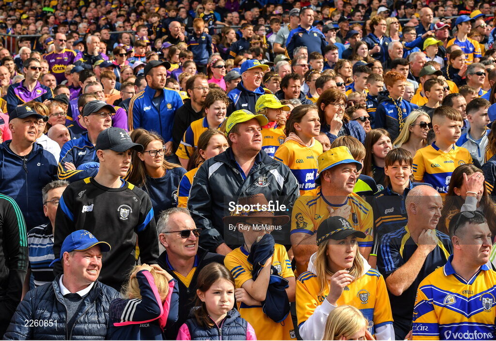 18 June 2022; Clare supporters, in the 34,640 attendance, await developments in the last minutes of the GAA Hurling All-Ireland Senior Championship Quarter-Final match between Clare and Wexford at the FBD Semple Stadium in Thurles, Tipperary. Photo by Ray McManus/Sportsfile