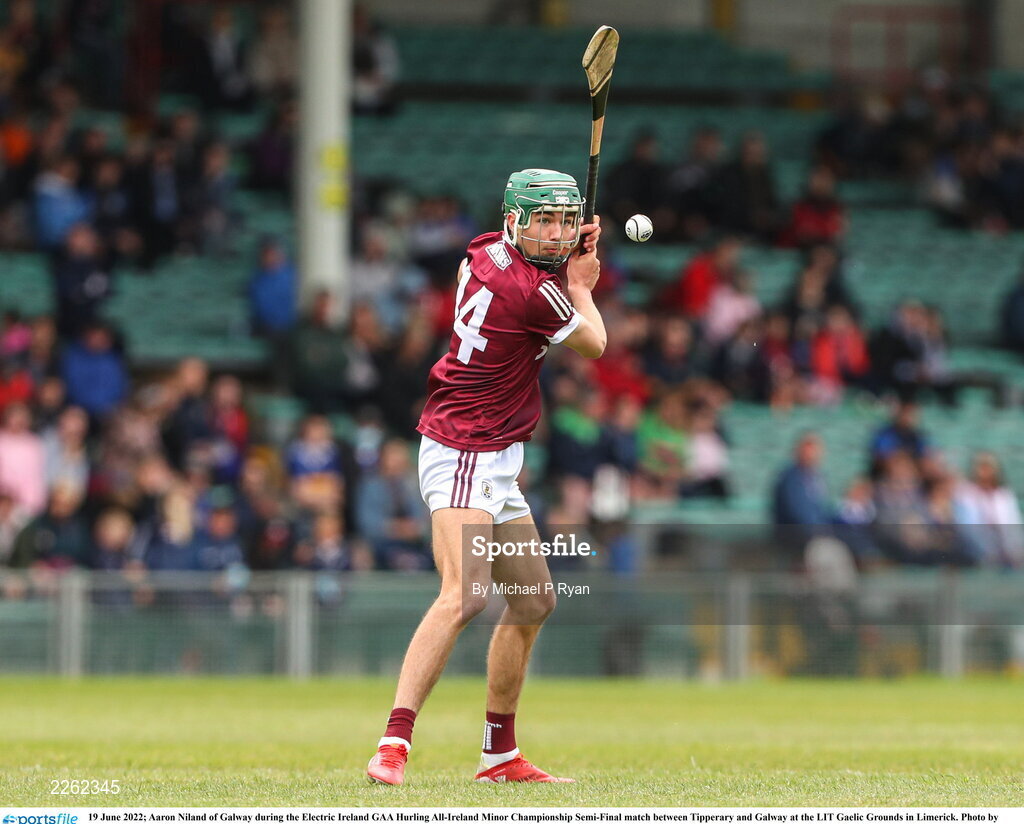 19 June 2022; Aaron Niland of Galway during the Electric Ireland GAA Hurling All-Ireland Minor Championship Semi-Final match between Tipperary and Galway at the LIT Gaelic Grounds in Limerick. Photo by Michael P Ryan/Sportsfile