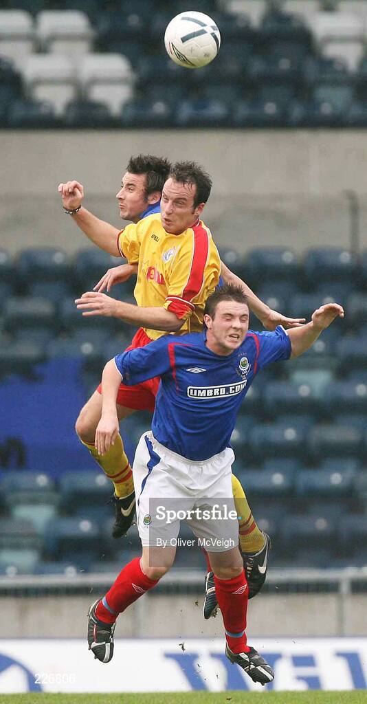 28 October 2006; Michael Gault and Jamie Mulgrew, Linfield, in action against Andy Hamilton, Dungannon Swifts. Carnegie Premier League, Linfield v Dungannon Swifts, Windsor Park, Belfast. Picture credit: Oliver McVeigh / SPORTSFILE
