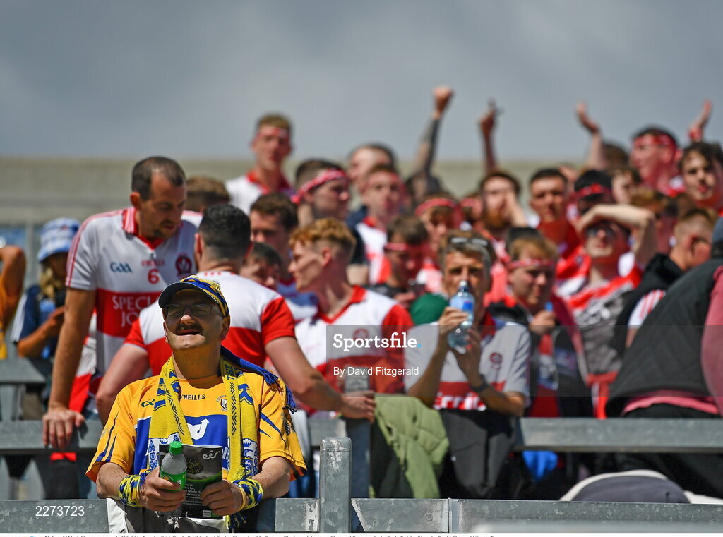 25 June 2022; A Clare supporter in Hill 16 before the GAA Football All-Ireland Senior Championship Quarter-Final match between Clare and Derry at Croke Park, Dublin. Photo by David Fitzgerald/Sportsfile