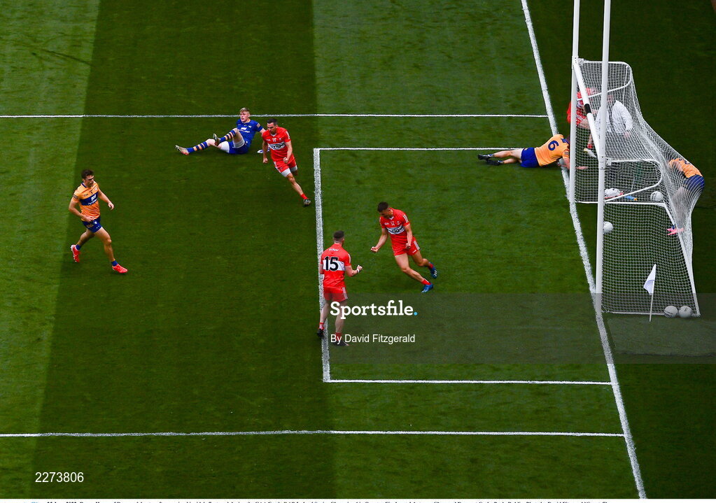 25 June 2022; Benny Heron of Derry celebrates after scoring his side's first goal during the GAA Football All-Ireland Senior Championship Quarter-Final match between Clare and Derry at Croke Park, Dublin. Photo by David Fitzgerald/Sportsfile