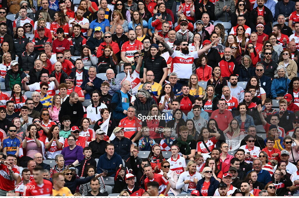 25 June 2022; Supporters react during the GAA Football All-Ireland Senior Championship Quarter-Final match between Clare and Derry at Croke Park, Dublin. Photo by David Fitzgerald/Sportsfile
