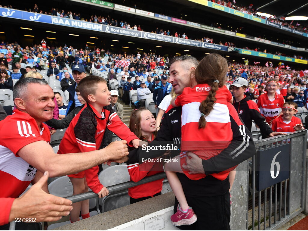 25 June 2022; Derry manager Rory Gallagher with family and supporters after the GAA Football All-Ireland Senior Championship Quarter-Final match between Clare and Derry at Croke Park, Dublin. Photo by David Fitzgerald/Sportsfile