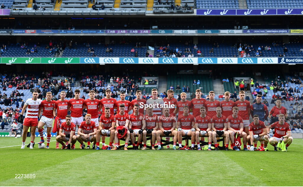 25 June 2022; The Cork team before the GAA Football All-Ireland Senior Championship Quarter-Final match between Dublin and Cork at Croke Park, Dublin. Photo by David Fitzgerald/Sportsfile