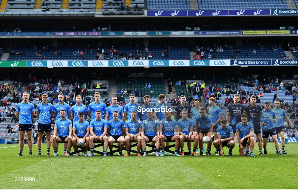 25 June 2022; The Dublin team before the GAA Football All-Ireland Senior Championship Quarter-Final match between Dublin and Cork at Croke Park, Dublin. Photo by David Fitzgerald/Sportsfile