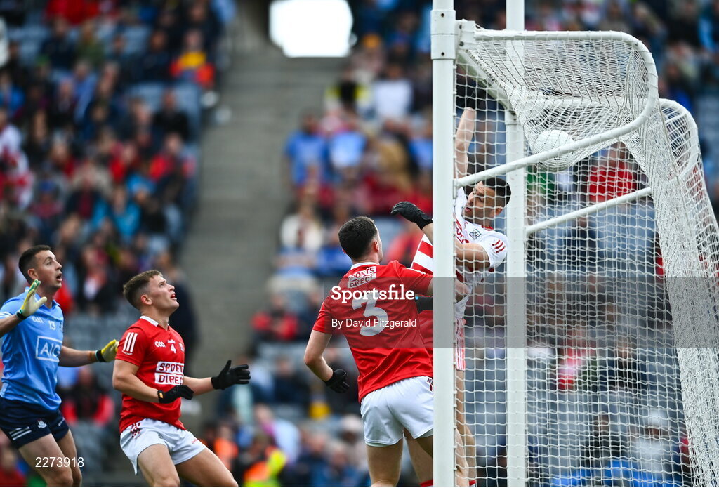 25 June 2022; The ball goes over the bar after hitting the post from a shot by Paddy Small of Dublin during the GAA Football All-Ireland Senior Championship Quarter-Final match between Dublin and Cork at Croke Park, Dublin. Photo by David Fitzgerald/Sportsfile