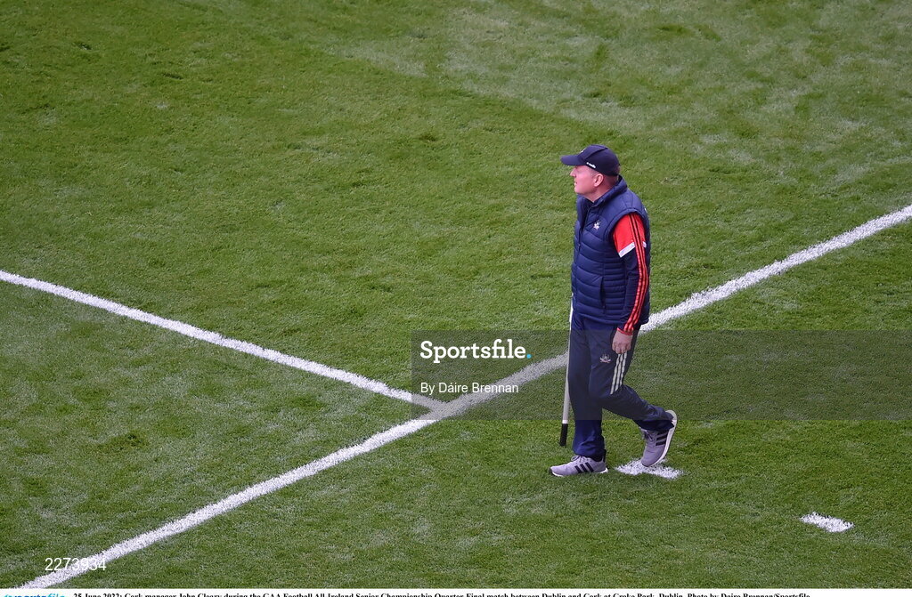 25 June 2022; Cork manager John Cleary during the GAA Football All-Ireland Senior Championship Quarter-Final match between Dublin and Cork at Croke Park, Dublin. Photo by Daire Brennan/Sportsfile