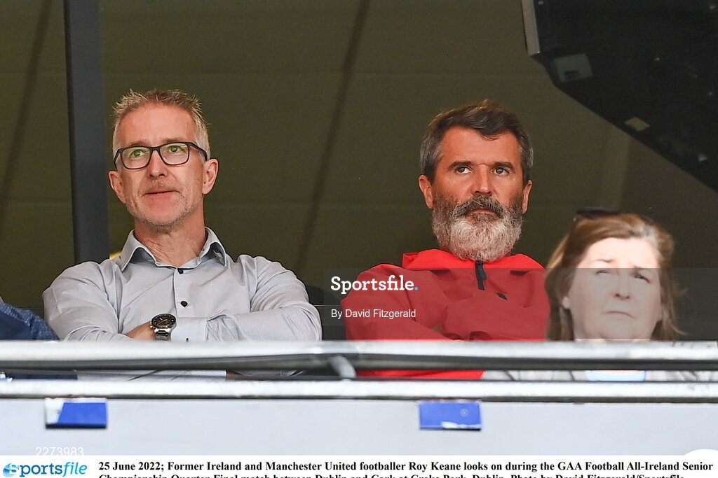 25 June 2022; Former Republic of Ireland and Manchester United footballer Roy Keane looks on during the GAA Football All-Ireland Senior Championship Quarter-Final match between Dublin and Cork at Croke Park, Dublin. Photo by David Fitzgerald/Sportsfile