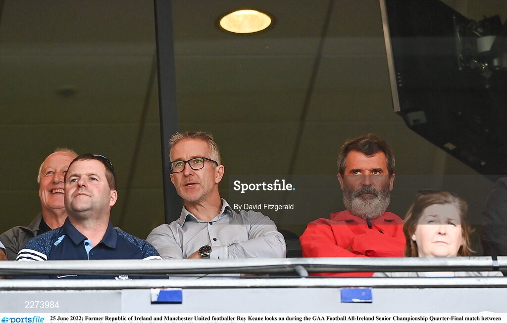 25 June 2022; Former Republic of Ireland and Manchester United footballer Roy Keane looks on during the GAA Football All-Ireland Senior Championship Quarter-Final match between Dublin and Cork at Croke Park, Dublin. Photo by David Fitzgerald/Sportsfile