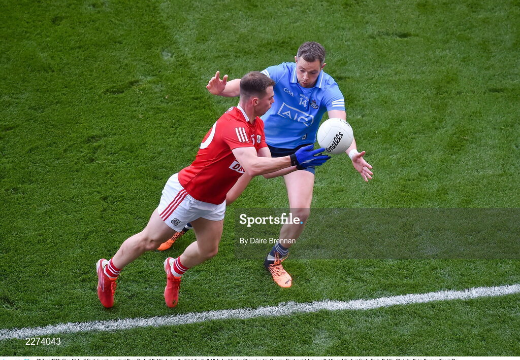 25 June 2022; Cian Kiely of Cork in action against Dean Rock of Dublin during the GAA Football All-Ireland Senior Championship Quarter-Final match between Dublin and Cork at Croke Park, Dublin. Photo by Daire Brennan/Sportsfile