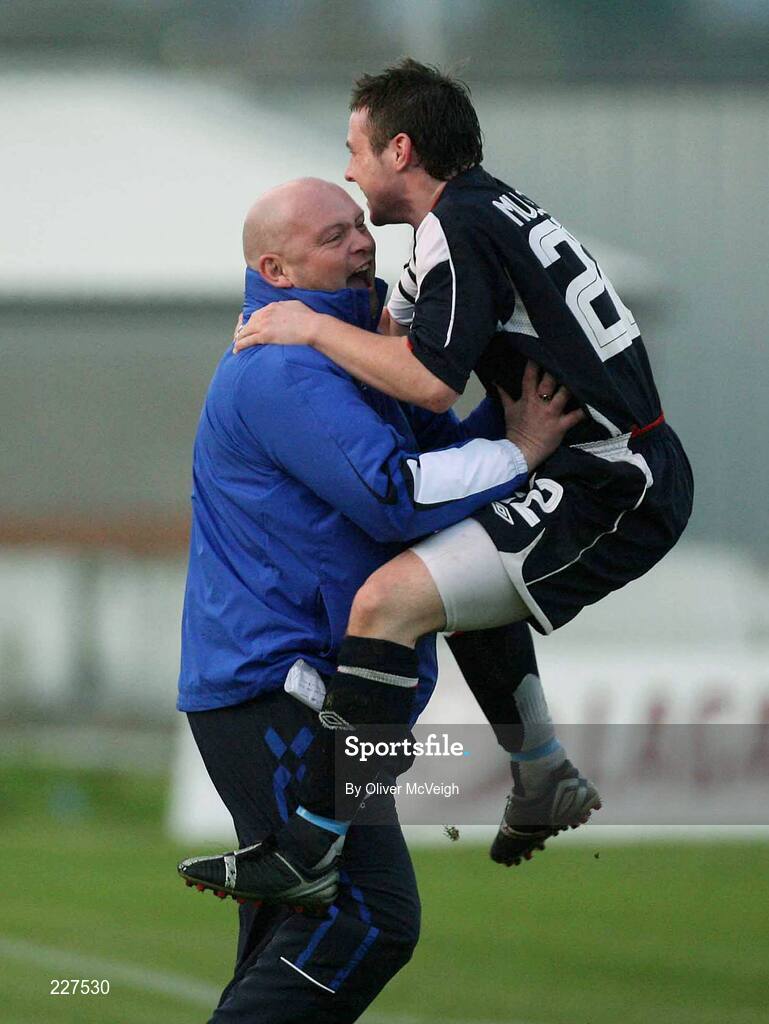 4 November 2006; Jamie Mulgrew, Linfield, celebrate with manager David Jeffrey's, after scoring his side's fourth goal. Carnegie Premier League, Lisburn Distillery v Linfield, Ballyskeagh, Lisburn, Co. Antrim. Picture credit: Oliver McVeigh / SPORTSFILE