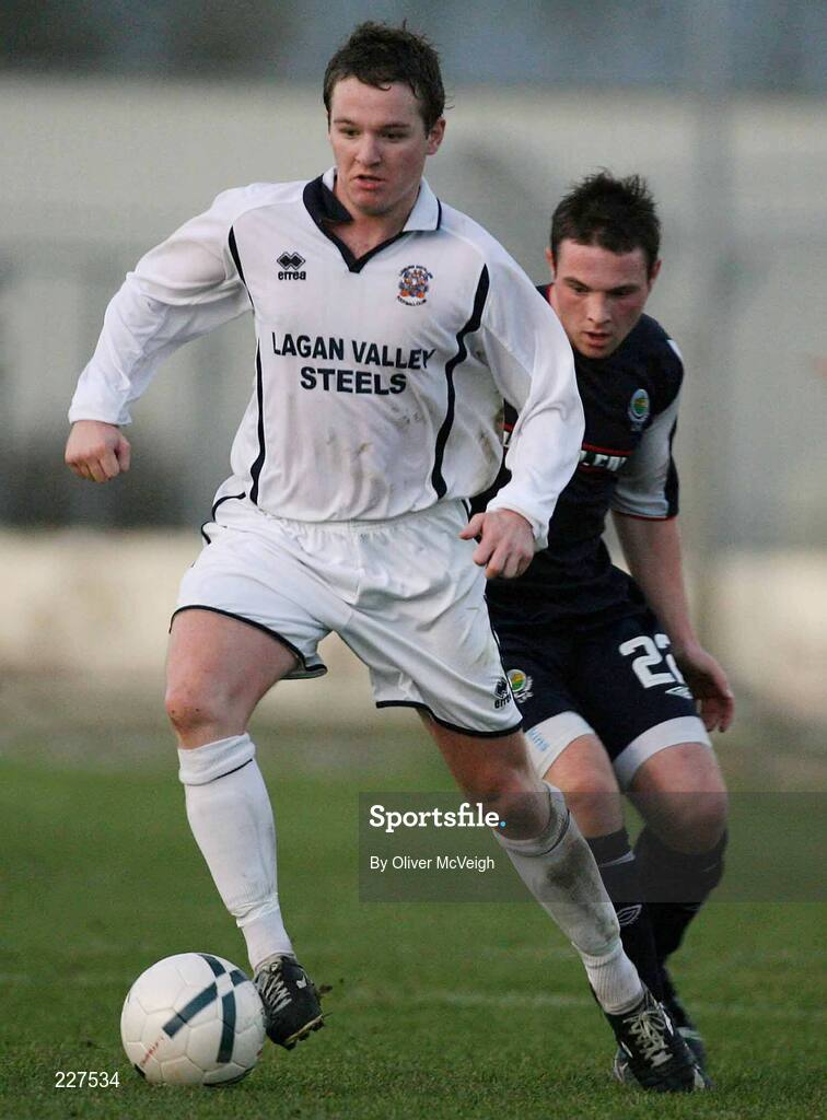 4 November 2006; Ryan McCann, Lisburn Distillery, in action against Jamie Mulgrew, Linfield. Carnegie Premier League, Lisburn Distillery v Linfield, Ballyskeagh, Lisburn, Co. Antrim. Picture credit: Oliver McVeigh / SPORTSFILE