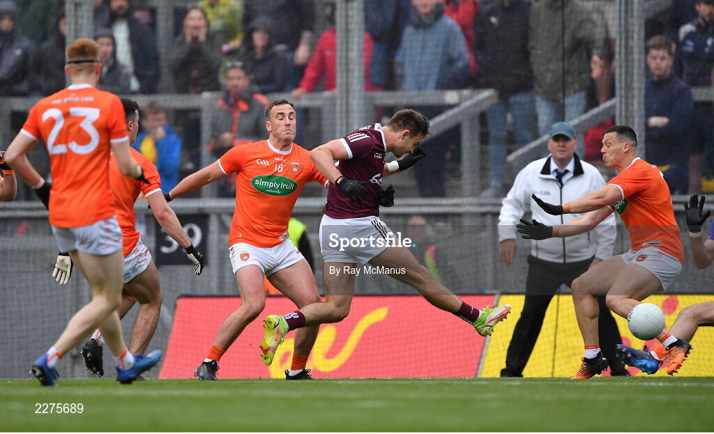26 June 2022; Cillian McDaid of Galway scores a late goal during the GAA Football All-Ireland Senior Championship Quarter-Final match between Armagh and Galway at Croke Park, Dublin. Photo by Ray McManus/Sportsfile