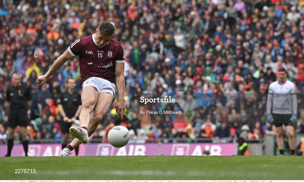 26 June 2022; Shane Walsh of Galway scores the first penalty in the penalty shoot-out of the GAA Football All-Ireland Senior Championship Quarter-Final match between Armagh and Galway at Croke Park, Dublin. Photo by Piaras Ó Mídheach/Sportsfile