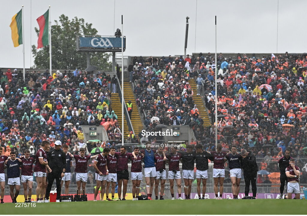 26 June 2022; Galway players during the penalty shoot-out of the GAA Football All-Ireland Senior Championship Quarter-Final match between Armagh and Galway at Croke Park, Dublin. Photo by Piaras Ó Mídheach/Sportsfile