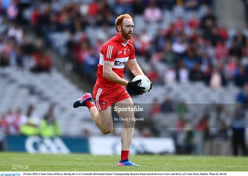 25 June 2022; Conor Glass of Derry during the GAA Football All-Ireland Senior Championship Quarter-Final match between Clare and Derry at Croke Park, Dublin. Photo by David Fitzgerald/Sportsfile