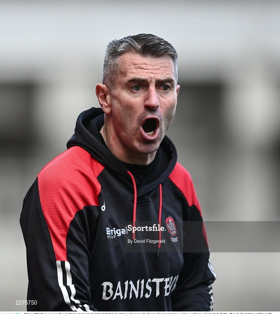 25 June 2022; Derry manager Rory Gallagher during the GAA Football All-Ireland Senior Championship Quarter-Final match between Clare and Derry at Croke Park, Dublin. Photo by David Fitzgerald/Sportsfile