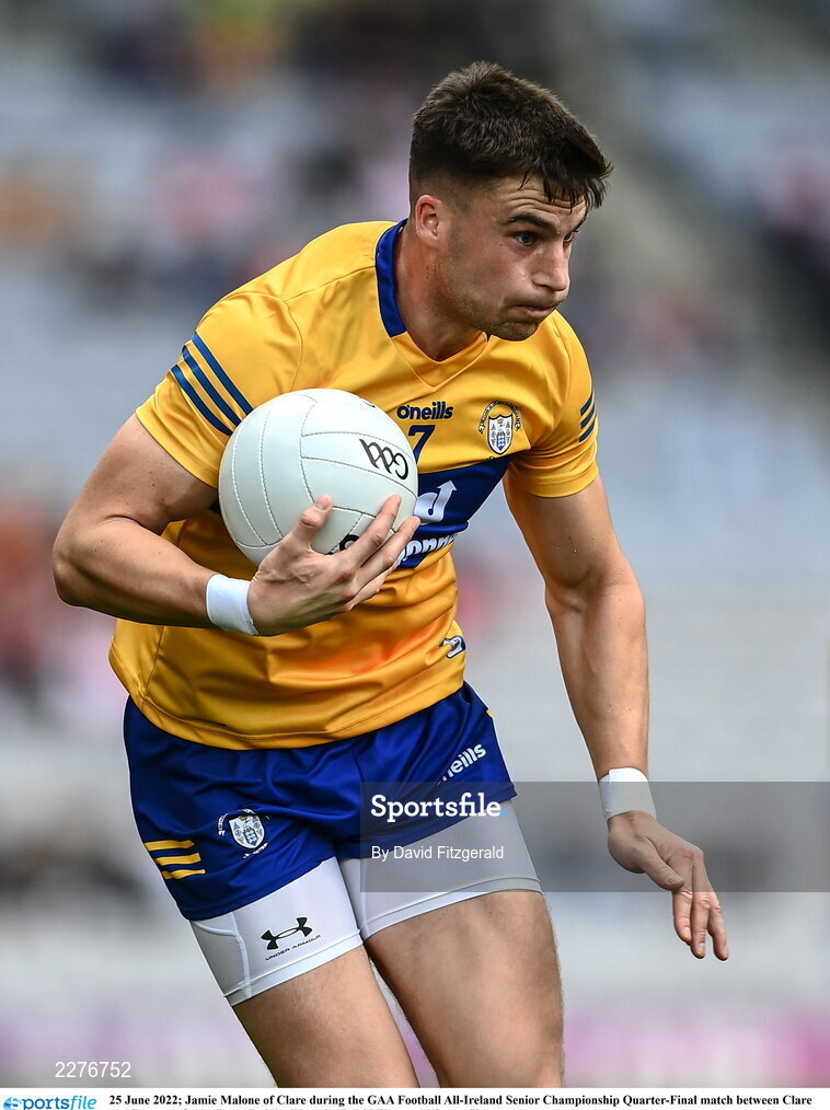 25 June 2022; Jamie Malone of Clare during the GAA Football All-Ireland Senior Championship Quarter-Final match between Clare and Derry at Croke Park, Dublin. Photo by David Fitzgerald/Sportsfile