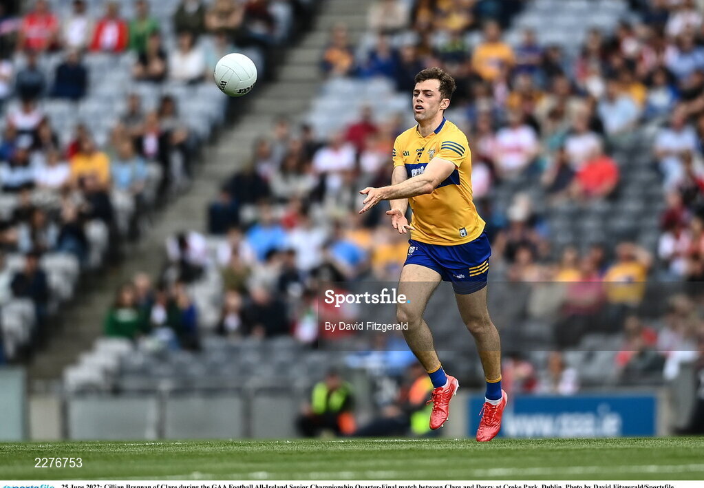 25 June 2022; Cillian Brennan of Clare during the GAA Football All-Ireland Senior Championship Quarter-Final match between Clare and Derry at Croke Park, Dublin. Photo by David Fitzgerald/Sportsfile