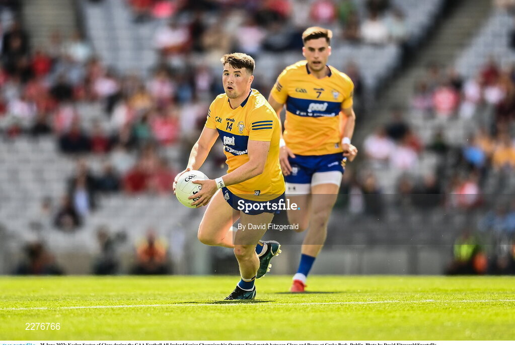 25 June 2022; Keelan Sexton of Clare during the GAA Football All-Ireland Senior Championship Quarter-Final match between Clare and Derry at Croke Park, Dublin. Photo by David Fitzgerald/Sportsfile