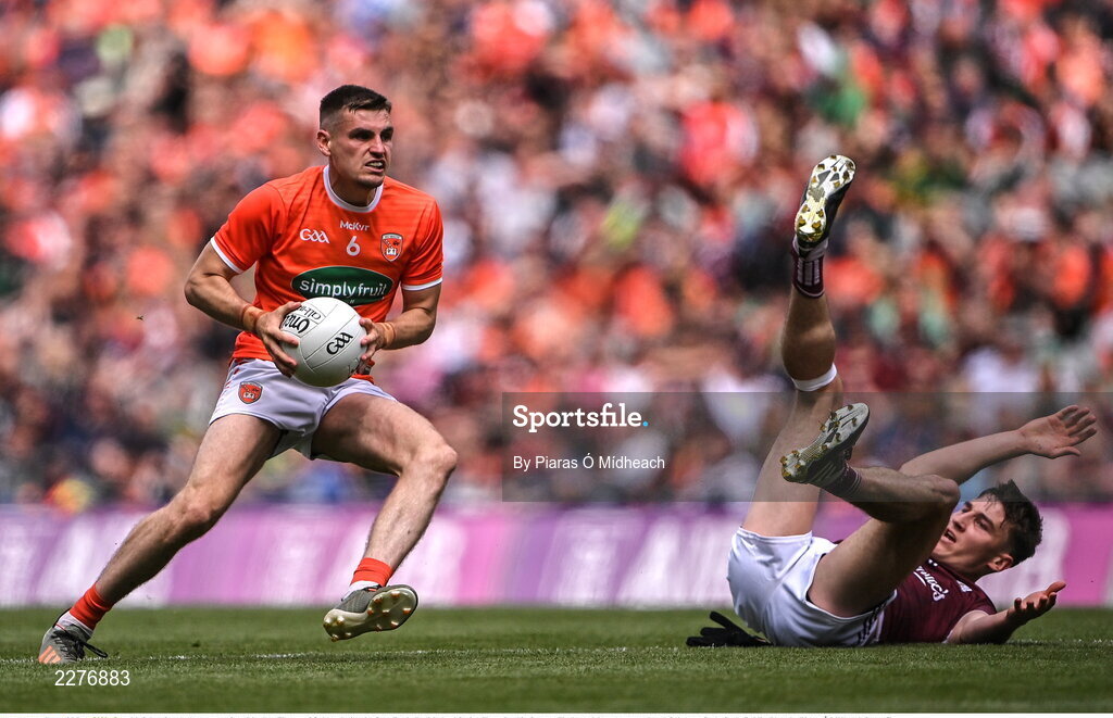 26 June 2022; Greg McCabe of Armagh gets away from Matthew Tierney of Galway during the GAA Football All-Ireland Senior Championship Quarter-Final match between Armagh and Galway at Croke Park, Dublin. Photo by Piaras Ó Mídheach/Sportsfile