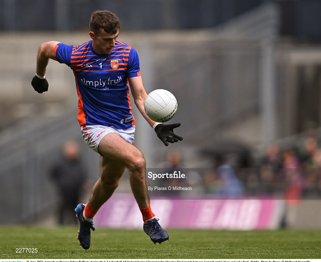 26 June 2022; Armagh goalkeeper Ethan Rafferty during the GAA Football All-Ireland Senior Championship Quarter-Final match between Armagh and Galway at Croke Park, Dublin. Photo by Piaras Ó Mídheach/Sportsfile