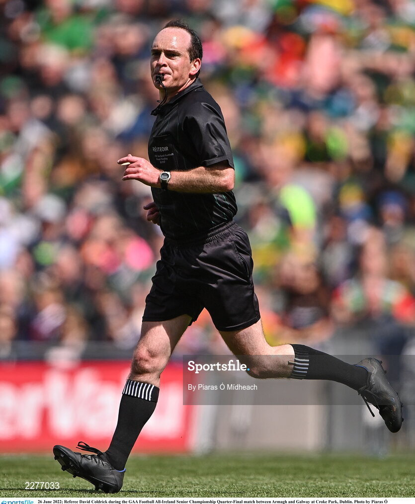 26 June 2022; Referee David Coldrick during the GAA Football All-Ireland Senior Championship Quarter-Final match between Armagh and Galway at Croke Park, Dublin. Photo by Piaras Ó Mídheach/Sportsfile