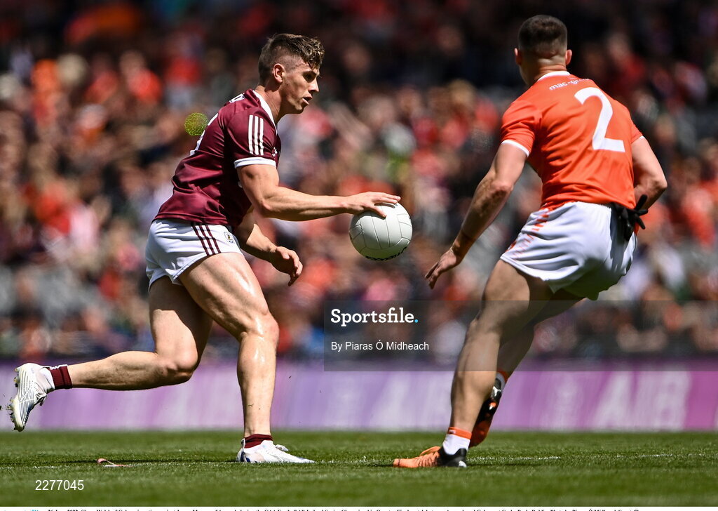 26 June 2022; Shane Walsh of Galway in action against James Morgan of Armagh during the GAA Football All-Ireland Senior Championship Quarter-Final match between Armagh and Galway at Croke Park, Dublin. Photo by Piaras Ó Mídheach/Sportsfile