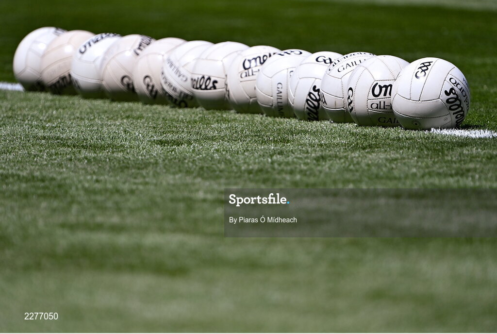 26 June 2022; A general view of footballs before the GAA Football All-Ireland Senior Championship Quarter-Final match between Armagh and Galway at Croke Park, Dublin. Photo by Piaras Ó Mídheach/Sportsfile