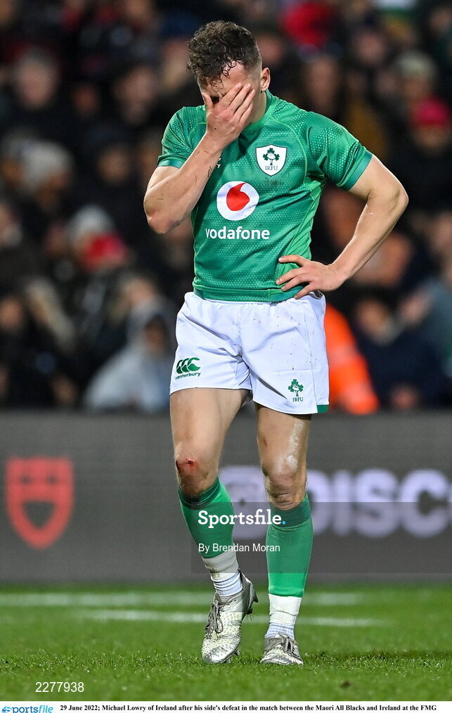 29 June 2022; Michael Lowry of Ireland after his side's defeat in the match between the Maori All Blacks and Ireland at the FMG Stadium in Hamilton, New Zealand. Photo by Brendan Moran/Sportsfile