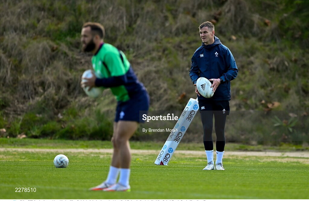 30 June 2022; Jonathan Sexton, right, and Jamison Gibson Park during Ireland rugby squad training at North Harbour Stadium in Auckland, New Zealand. Photo by Brendan Moran/Sportsfile