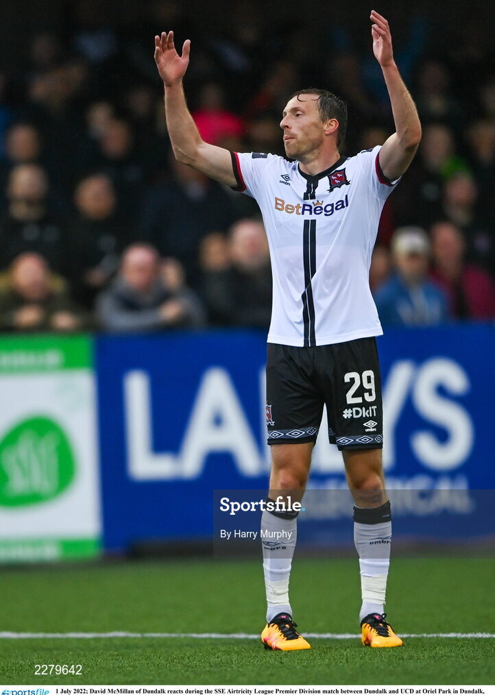 1 July 2022; David McMillan of Dundalk reacts during the SSE Airtricity League Premier Division match between Dundalk and UCD at Oriel Park in Dundalk, Louth. Photo by Harry Murphy/Sportsfile