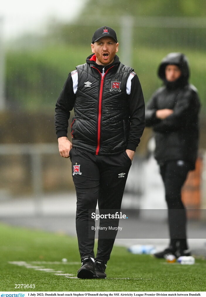 1 July 2022; Dundalk head coach Stephen O'Donnell during the SSE Airtricity League Premier Division match between Dundalk and UCD at Oriel Park in Dundalk, Louth. Photo by Harry Murphy/Sportsfile