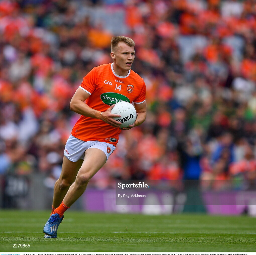 26 June 2022; Rian O'Neill of Armagh during the GAA Football All-Ireland Senior Championship Quarter-Final match between Armagh and Galway at Croke Park, Dublin. Photo by Ray McManus/Sportsfile